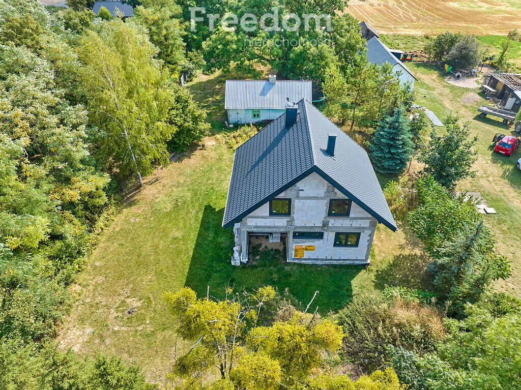 Na sprzedaż dom w stanie surowym zamkniętym według projektu Pełenenergii – M173 na dużej, ustawnej działce o powierzchni 22 ary.